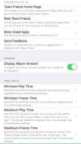 Team Freeze can be customized to how you want to dance. Easy to access sliders allow you to adjust the average length of the time that music is played or paused. More advanced options can also be accessed from the options screen.